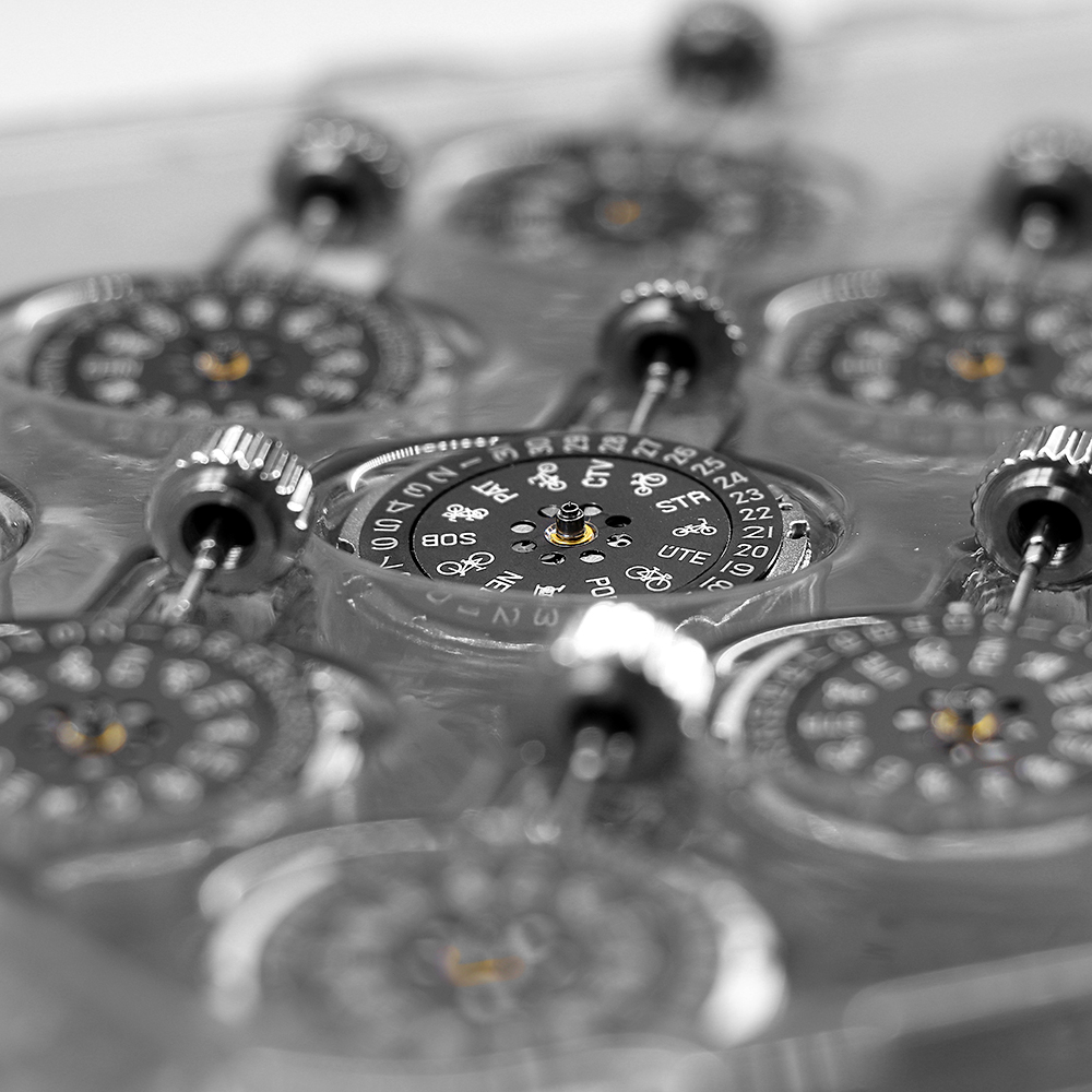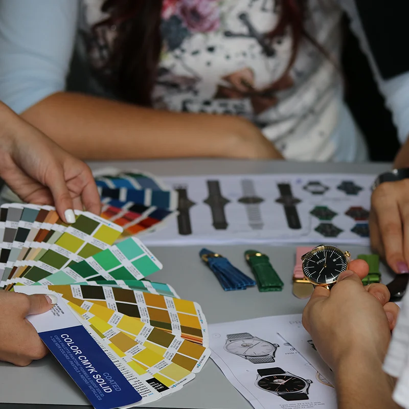 Proces kompletace také provádíme při individualizaci nových modelů hodinek a při výrobě prototypů nových kolekcí. Barevné variace materiálů, číselníků, ručiček a řemínků umožňuje našim designérům vytvářet prototypy a testovat tak nové barevné kombinace.