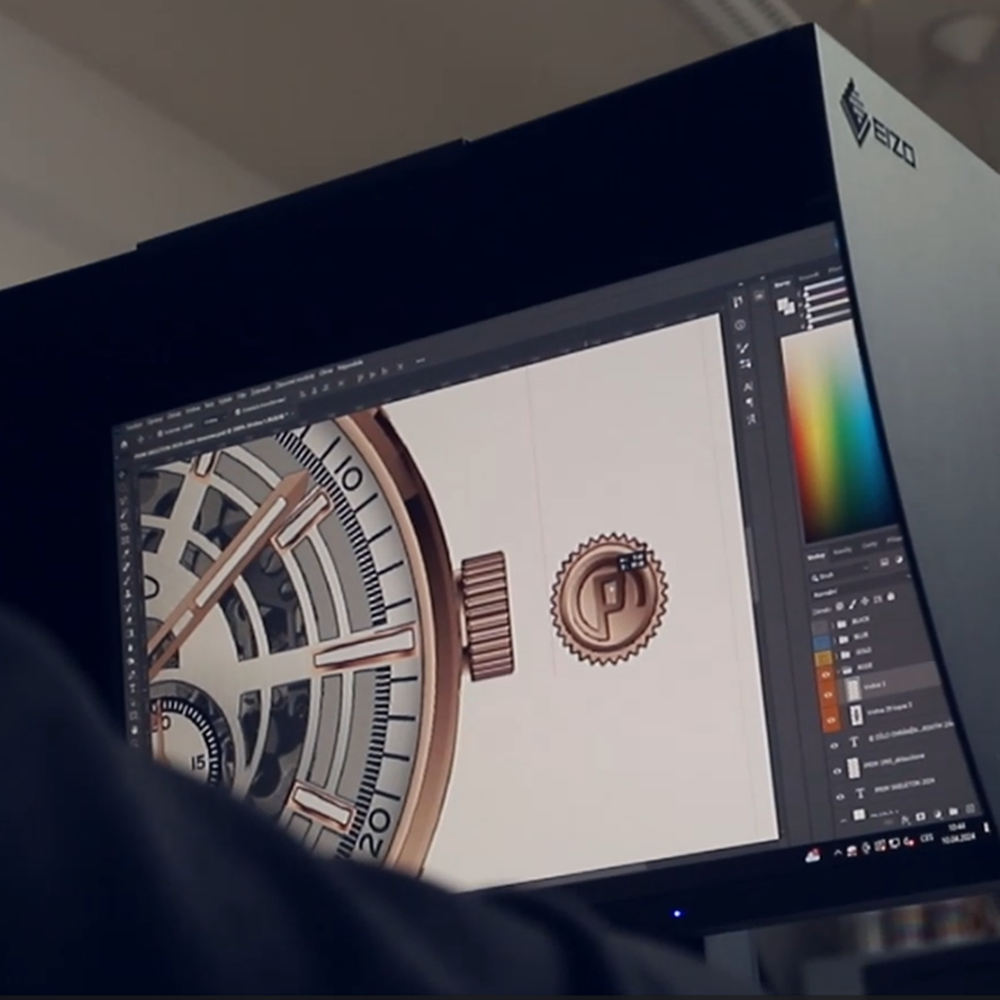 Při návrhu pracujeme s detaily, které tvoří jedinečný charakter hodinek – od tvaru pouzdra, přes číselník a ručičky až po volbu řemínku. Moderní 3D technologie nám umožňují vytvářet realistické vizualizace, které následně ladíme do posledního detailu.