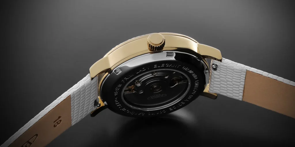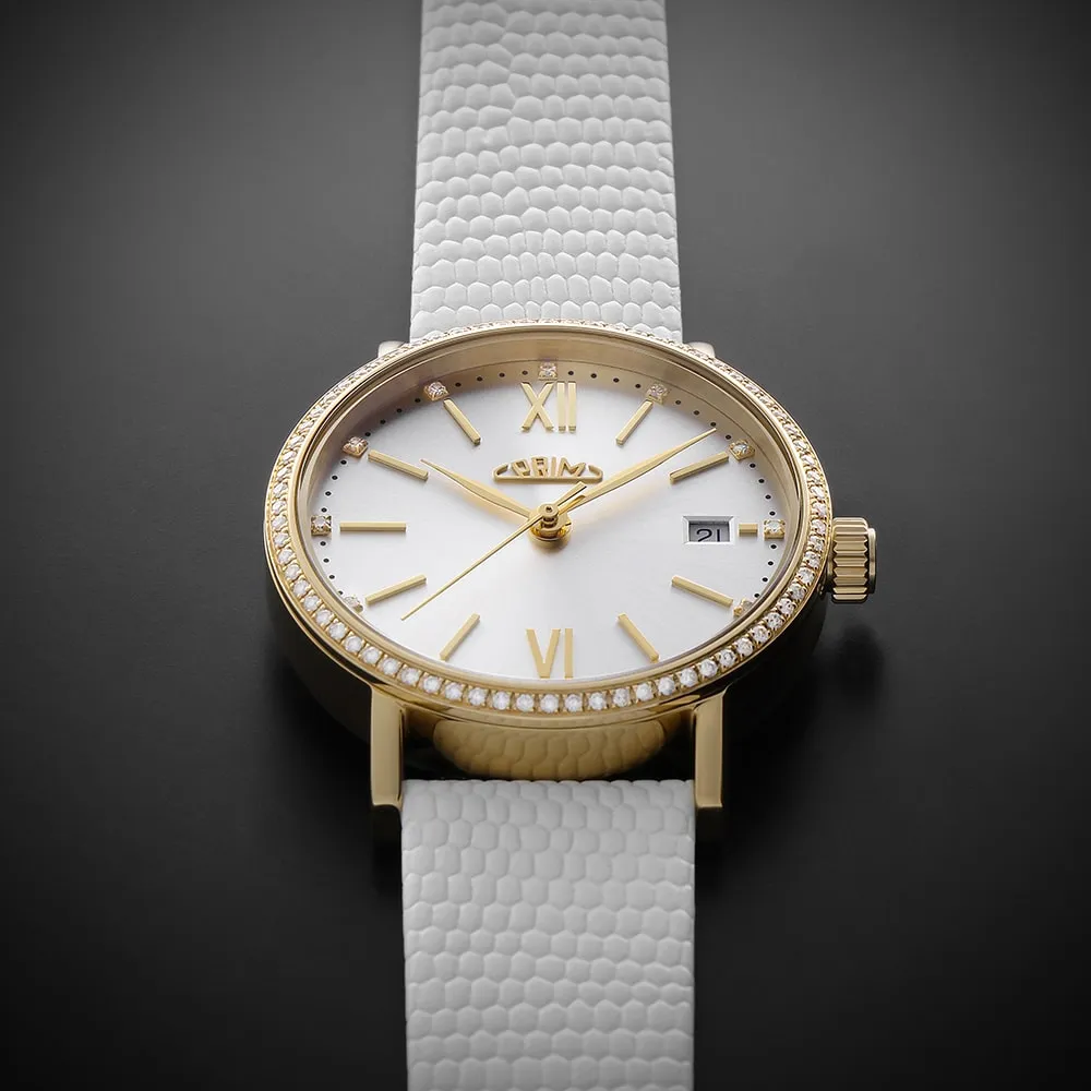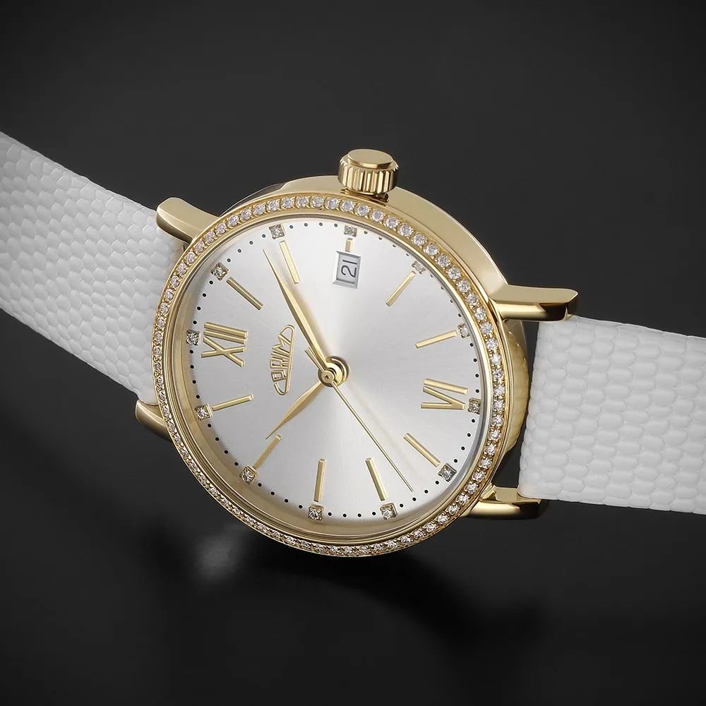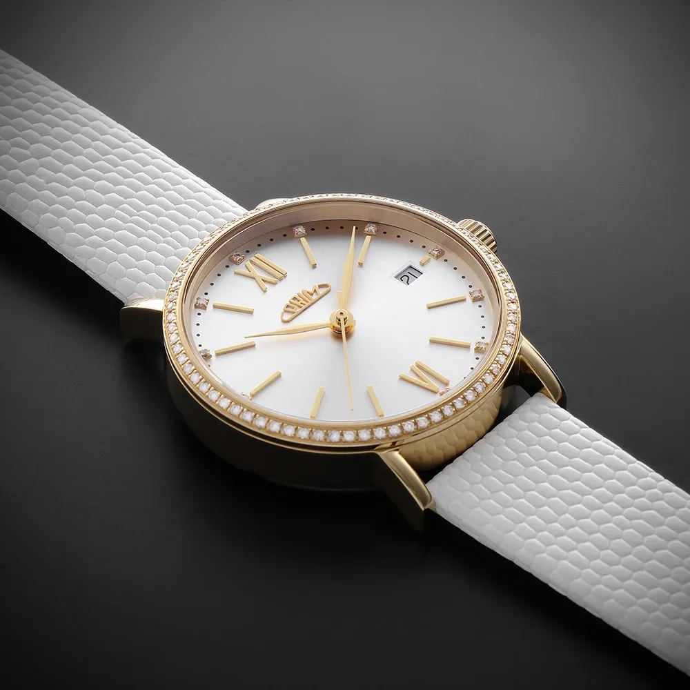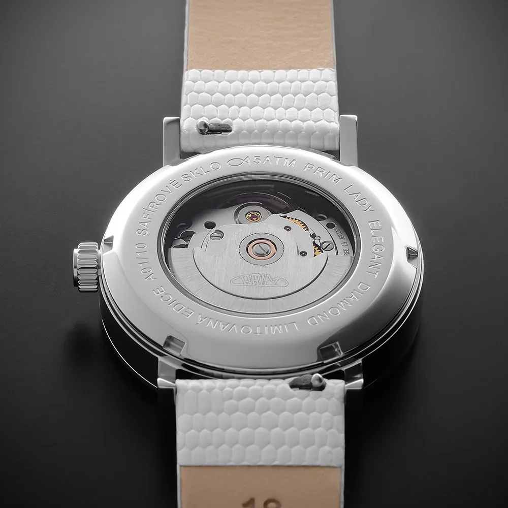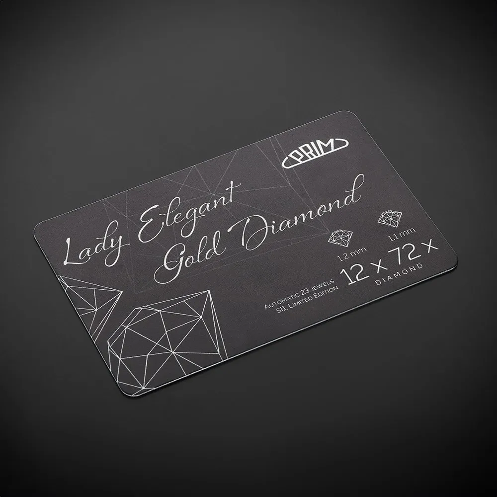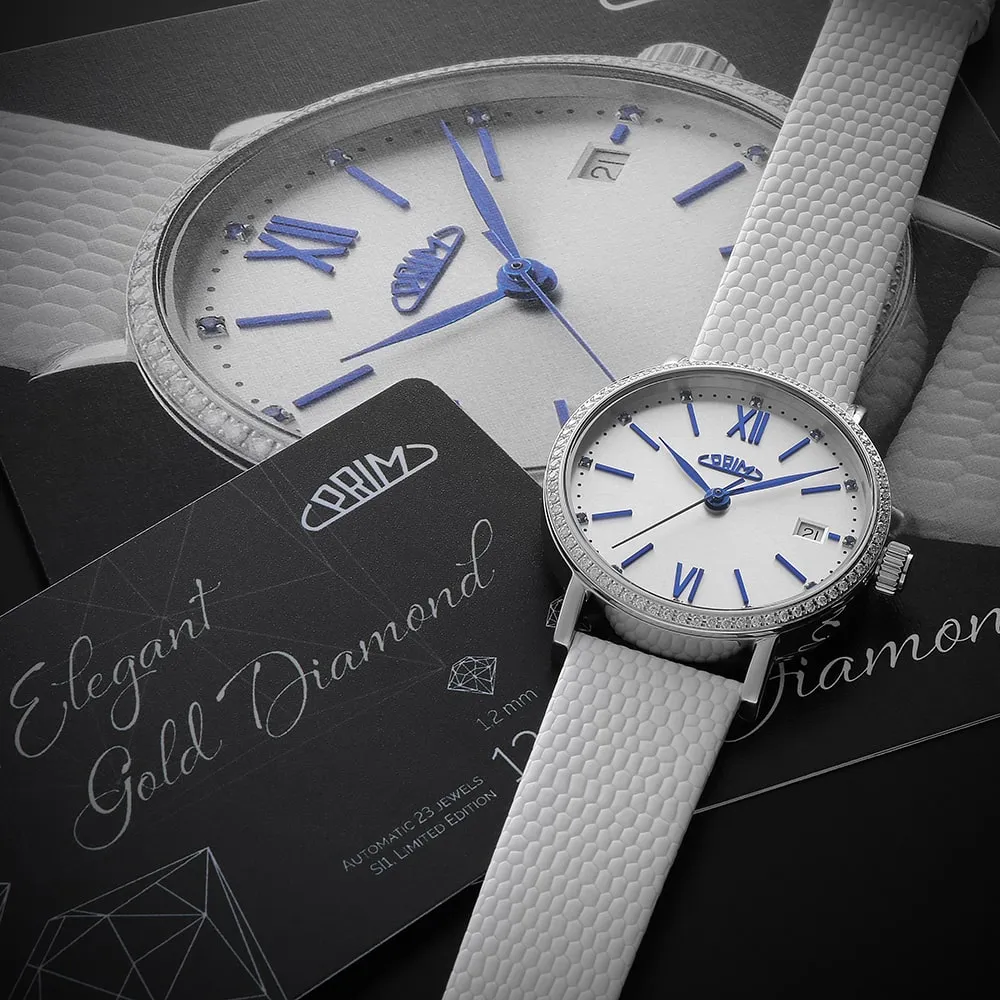 Limitovaná originální edice PRIM Lady Elegant Gold Diamond vyzařuje klasickou eleganci, podmaňující si srdce žen. Tyto automatické hodinky jsou stvořeny pro všechny dámy, které od svých doplňků očekávají nejen trendy vzhled, ale i vysokou kvalitu. Hodinky jsou vyrobeny v celkovém počtu 40ti kusů, 10 kusů každé verze a jsou individuálně číslovány.