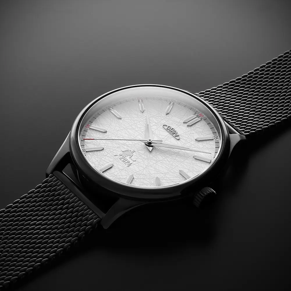Na výběr máte ze dvou barevných variant – elegantní černé a symbolické zlaté. Jakou barevnou variantu zvolíte je pouze na vás, celkově je vyrobeno 24 kusů! Hodinky jsou dodávány s ocelovým mesh tahem. V případě zájmu o kožený řemínek lze dokoupit RB.13206. 22 mm