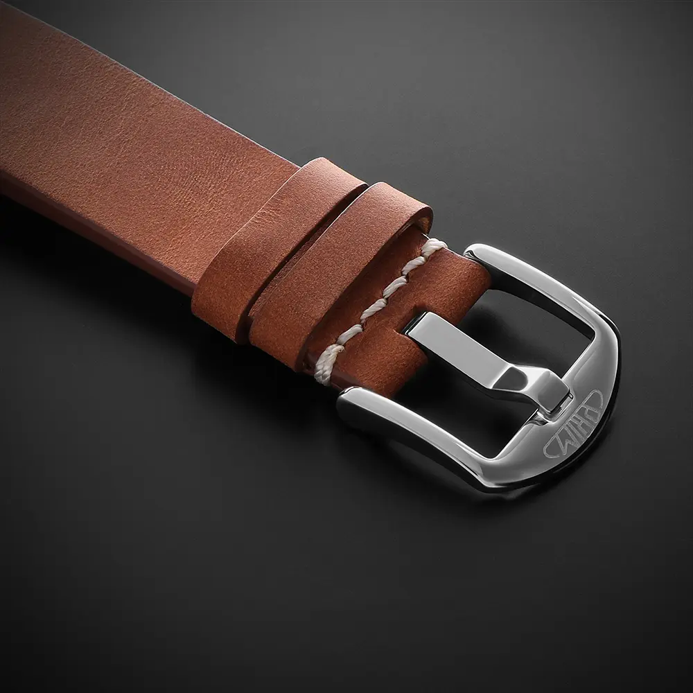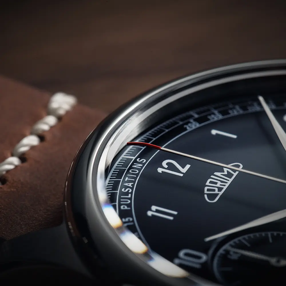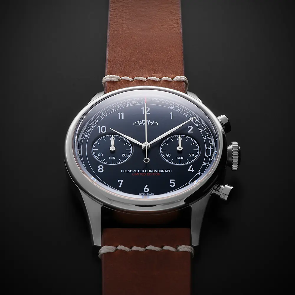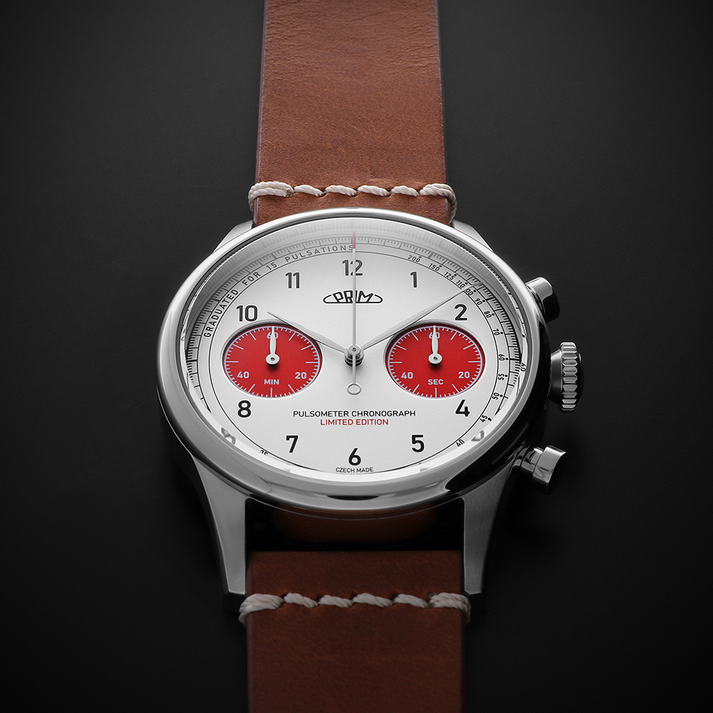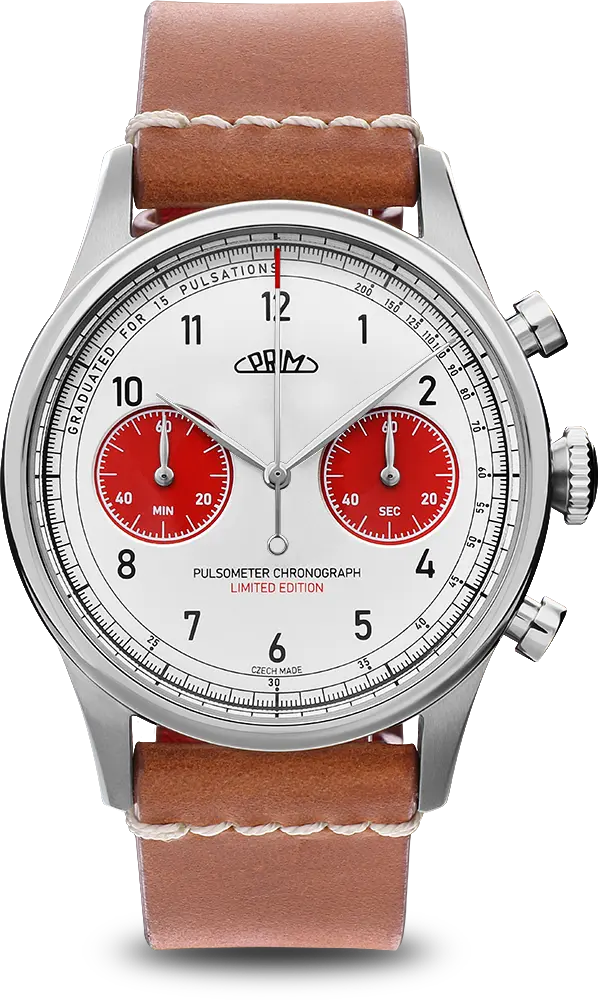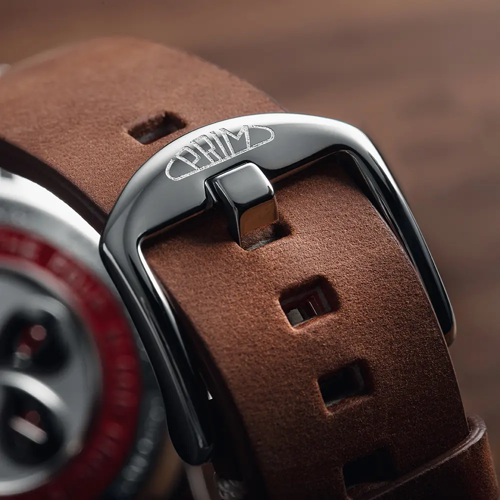 Celkový design a vjem hodinek je umocněn volbou ručně vyrobeného a prošitého řemínku z kvalitní hovězí kůže, přičemž spodní část je barvena do červena, modra, případně světle hněda dle typu číselníku. Řemínek je opatřen rychlo-stěžejkami pro snadnou výměnu a výraznou leštěnou nerezovou sponou s mechanicky gravírovaným logem PRIM. Hodinky jsou vyrobeny v celkovém počtu 150ti kusů – 50ks každé verze a jsou individuálně číslovány. Verze číselníku jsou: Stříbrná s červenými subčíselníky, Champaign a Temně modrá.