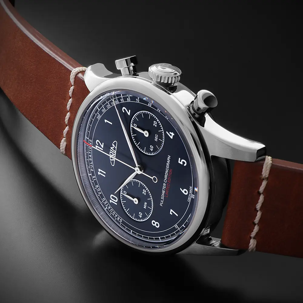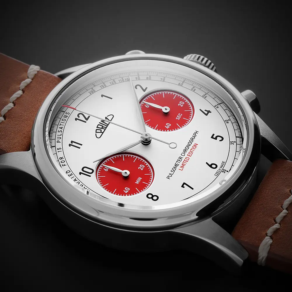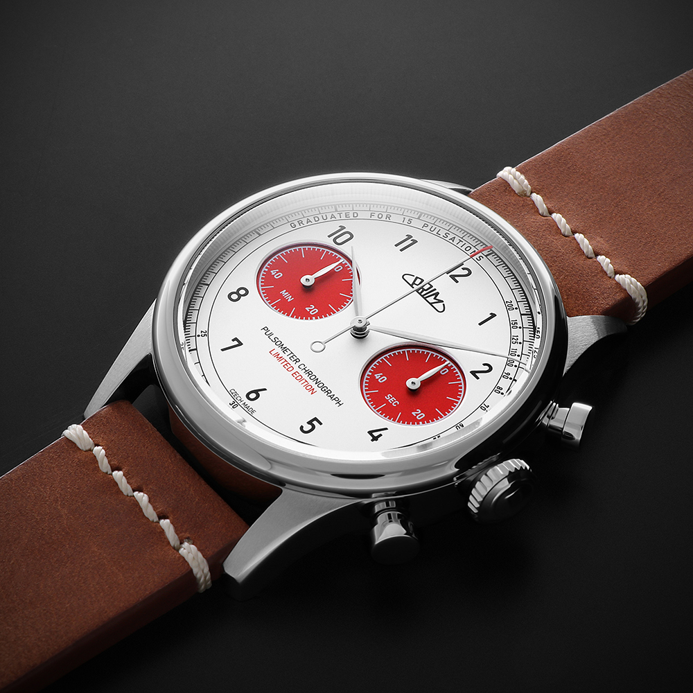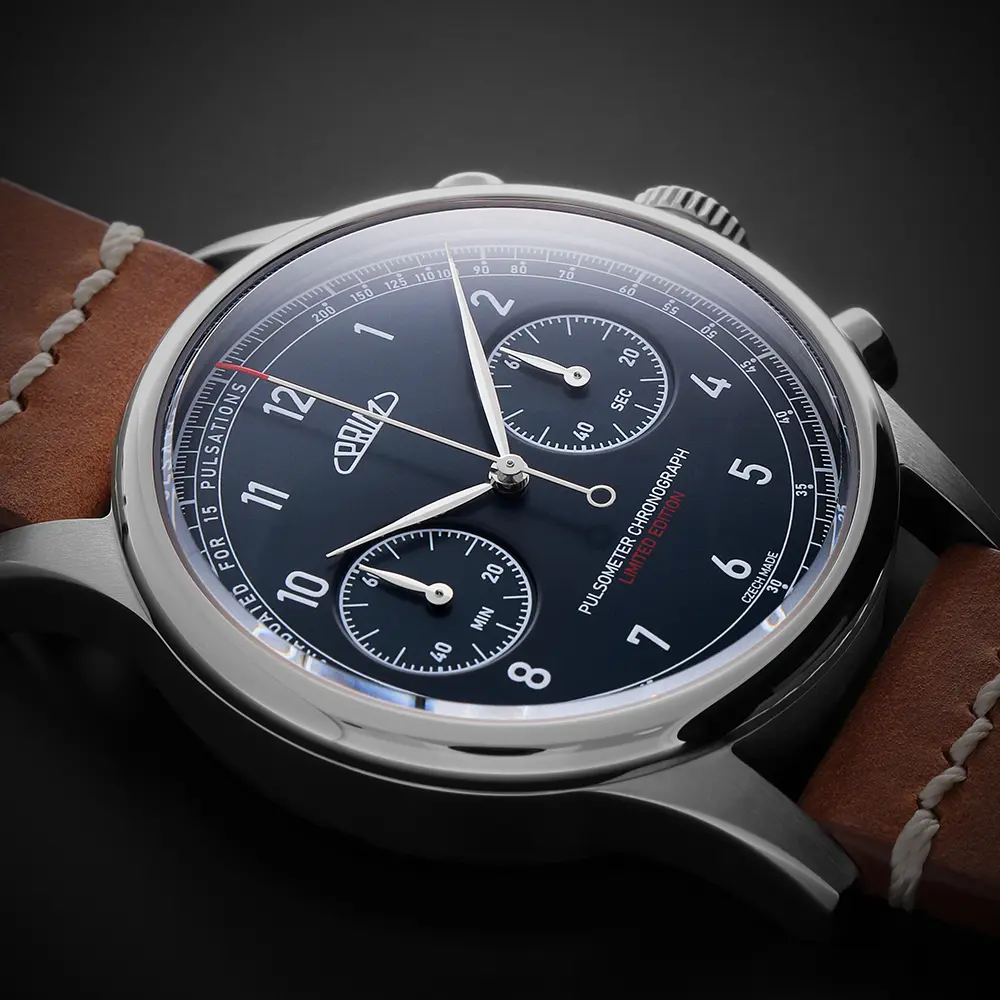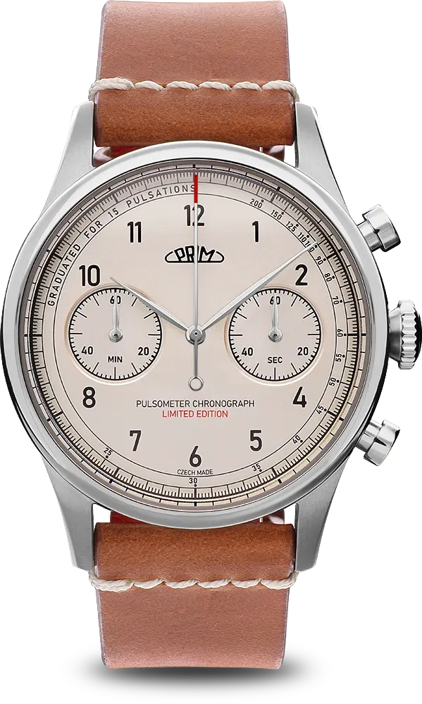 K 150ti letému výročí vznikl ve spolupráci s našimi designéry chronograf opatřen tzv. pulsometrickou stupnicí umožňující snadné orientační měření srdečního tepu. Funkce pulsometru je velmi prostá. Po stisku tlačítka chronografu je potřeba napočítat 15 srdečních tepů a poté chronograf zastavit. Hlavní ručička chronografu ukáže na stupnici vaši aktuální tepovou frekvenci. Tento chronograf lze však použít i jako klasické stopky a to s přesností ¼ sekundy dohromady až maximálně 59 minut 59 sekund.
