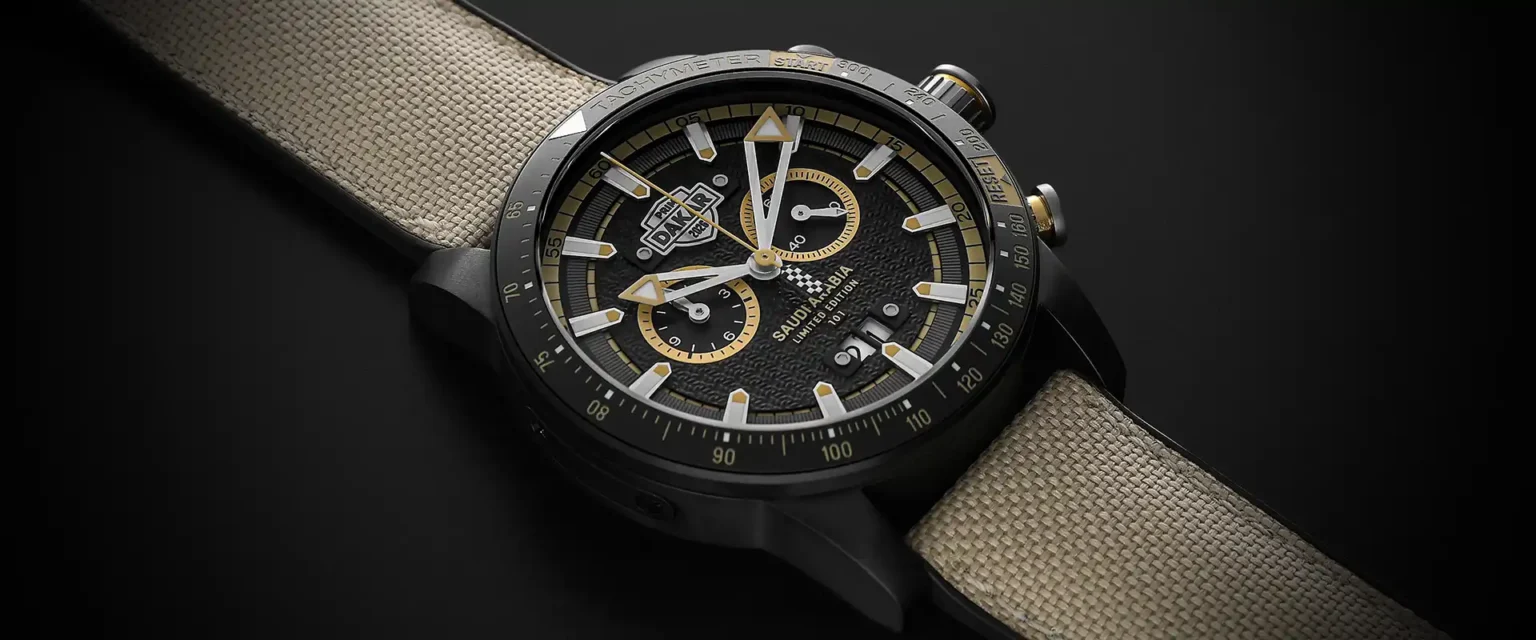 Solidny i trwały, jak jego tytanowa koperta. Niezawodny, czytelny w każdych warunkach pogodowych dzięki charakterystycznym wskazówkom i indeksom o wysokiej jasności. Precyzyjny jak wypukła tarcza z oznaczeniem limitowanej edycji i napisem Saudi Arabia, detalami szachownicy i dwiema subtarczami. Atrakcyjny jak skala tachymetryczna na ceramicznym pierścieniu, który uzupełnia niezbędne funkcje sportowe.