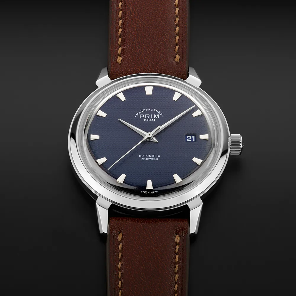 Przez szklany klosz zegarka widać mechanizm manufakturowy PRIM kaliber 98.00 z automatycznym naciągiem. Dzięki 22 kamieniom łożyskowym, mechanizm wykonuje 21 600 wahnięć na godzinę (3 Hz). Rezerwa chodu wynosi co najmniej 48 godzin. Mechanizm zdobi symbol czeskiego lwa i piktogram. Ręcznie barwione, niebieskie śruby również przyciągają wzrok już na pierwszy rzut oka.