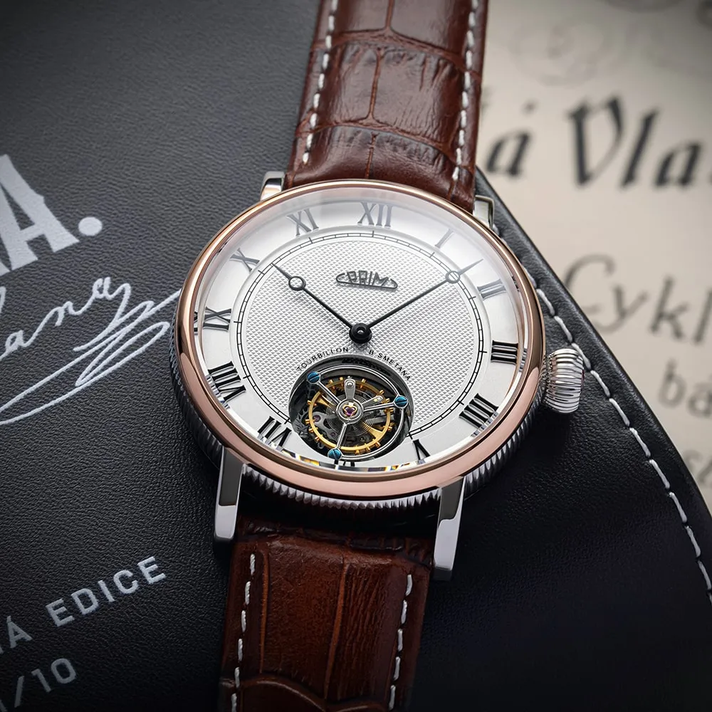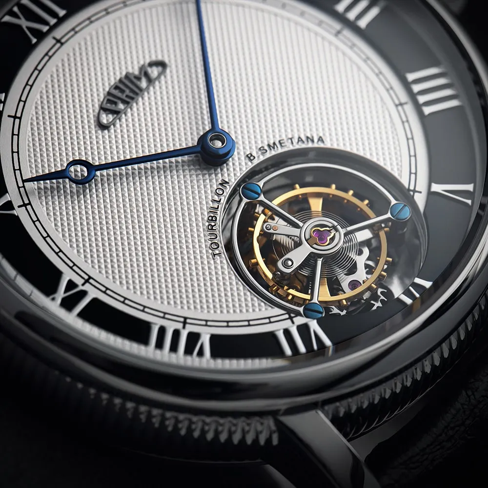 PRIM Tourbillon B. Smetana je nejen symbolem české hudby, ale i výrazem respektu k tradičnímu hodinářství, který přináší kus historie do každodenního života svých majitelů. Tato limitovaná edice je ztělesněním české elegance a kulturního odkazu, který se s každým tikem propojuje s časem i hudbou.