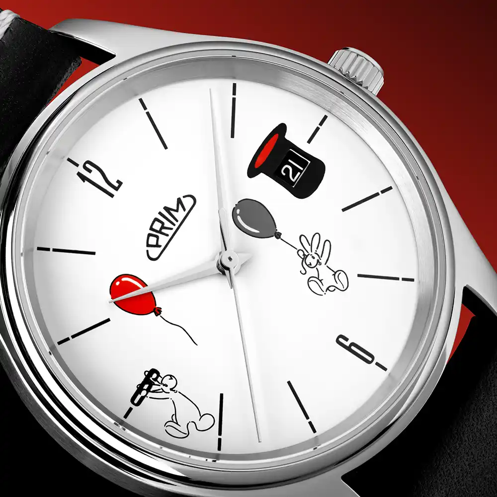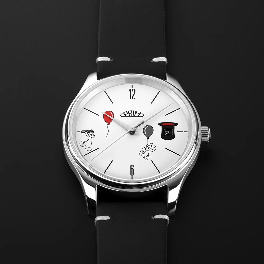 V hodinkách PRIM. Na číselníku i na víku. Při každém pohledu na zápěstí vykouzlí úsměv a vzbudí pozornost. Design ale zachovává čisté linie a nerušivou barevnost. Proto se tento model hodí k jakémukoliv oblečení, od formálního po volnočasový pohodlný styl.