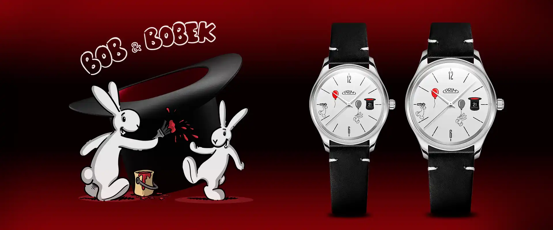 Tato, v pořadí druhá, generace hodinek PRIM s Bobem a Bobkem je opět vyrobena ve dvou velikostech, aby hodinky pěkně vynikly na jemném dámském i pánském zápěstí. Elegantní nadčasový vzhled je vkusně doplněný motivem postaviček králíků při jejich typických rošťárnách. Na indexu 3 je důmyslně umístěný datum v pověstném klobouku kouzelníka Pokustóna, domově obou výtečníků.