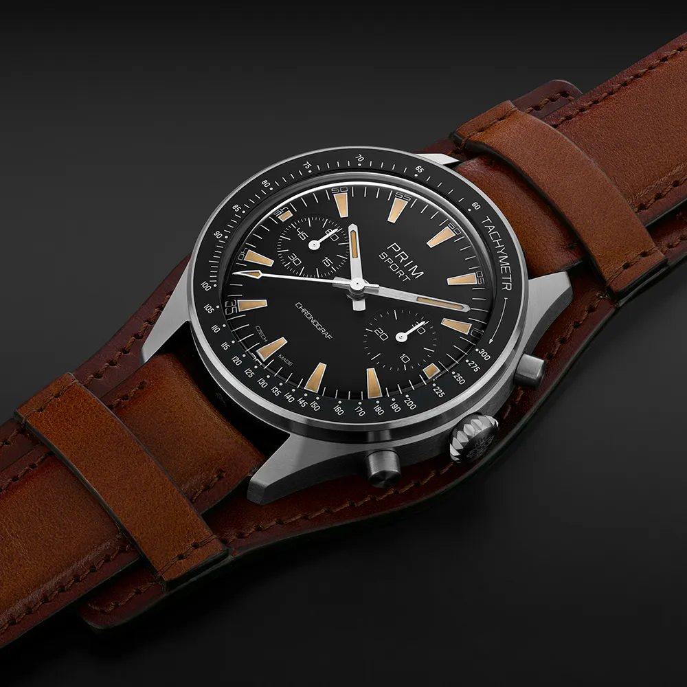 Je to rytmus motoru, lesk chromu a vůně asfaltu, co inspirovalo vznik modelu PRIM SPORT CHRONO LE. Hodinky, které měří nejen čas, ale i odvahu. Symbol síly, dynamiky a přesnosti, který přenáší ducha závodního okruhu do každodenního života.