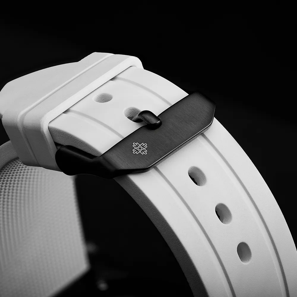 Pouzdro z nerezové oceli 316L s úpravou DLC je pevným rámem pro všechny příběhy, které se odehrávají mimo město. Šroubovací korunka zajišťuje odolnost i vodotěsnost 10 ATM.