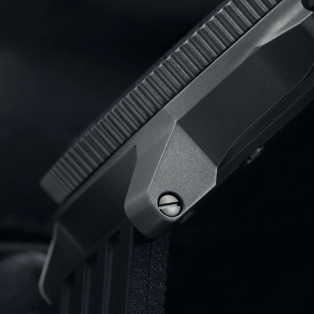 Lehkost a komfortní nošení poměrně robustního pouzdra zajišťuje titan. Materiál, který vyniká svojí lehkostí a odolností stejně, jako atraktivitou a pořádnou dávkou charisma.