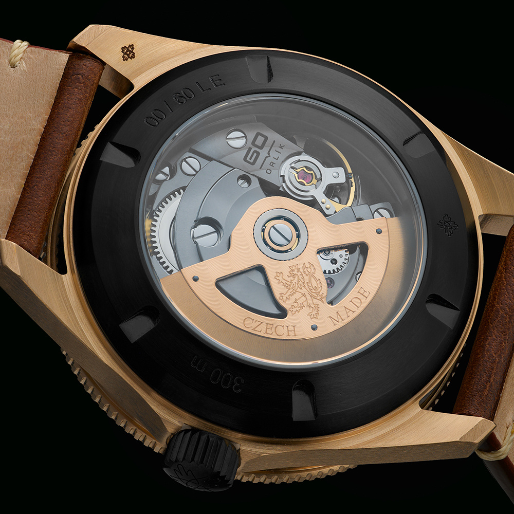Život dává tomuto modelu inhouse strojek PRIM kalibr 95.00 s automatickým nátahem. S 22 ložiskovými kameny vykoná 21 600 kyvů za hodinu (3Hz). Rezerva chodu je min. 48 hodin. Přes průhledné víko je vidět dekorování českým lvem a výroční symbolikou Orlíku s číslicí 60.