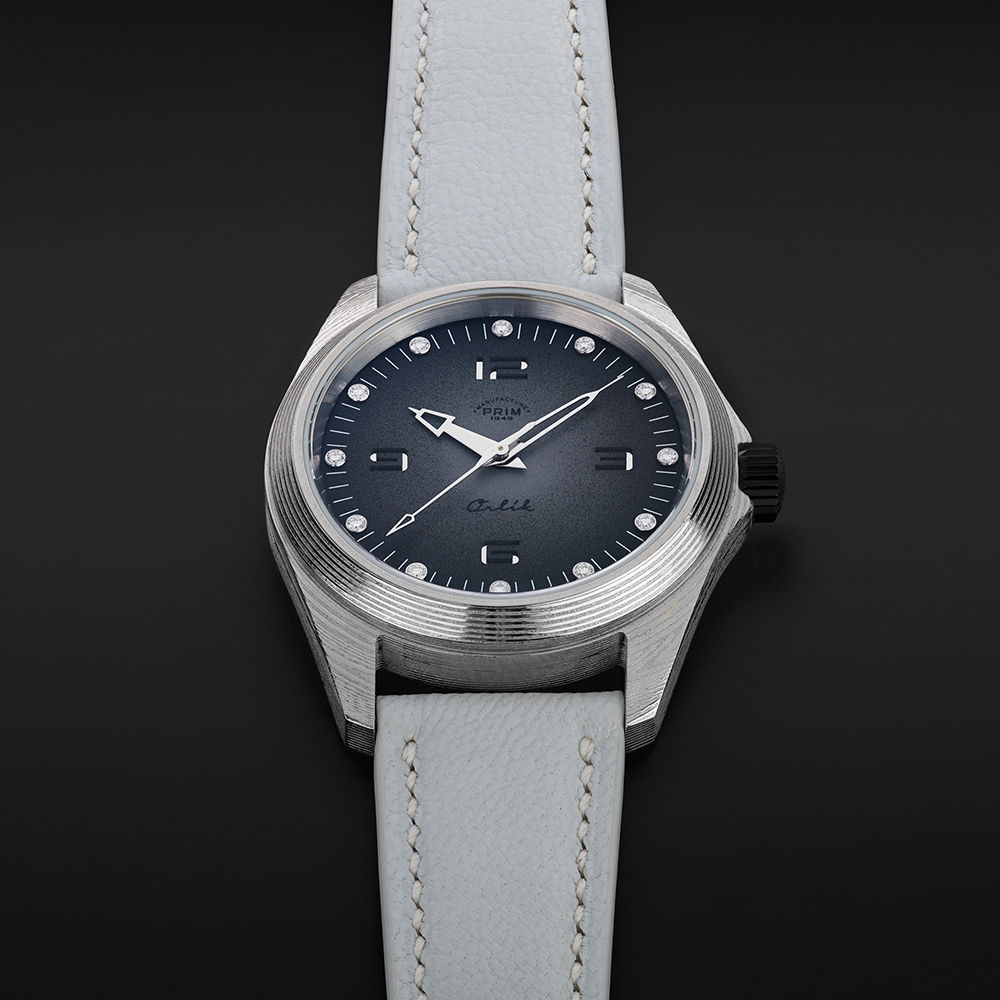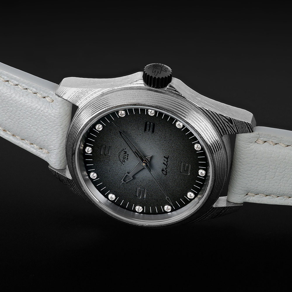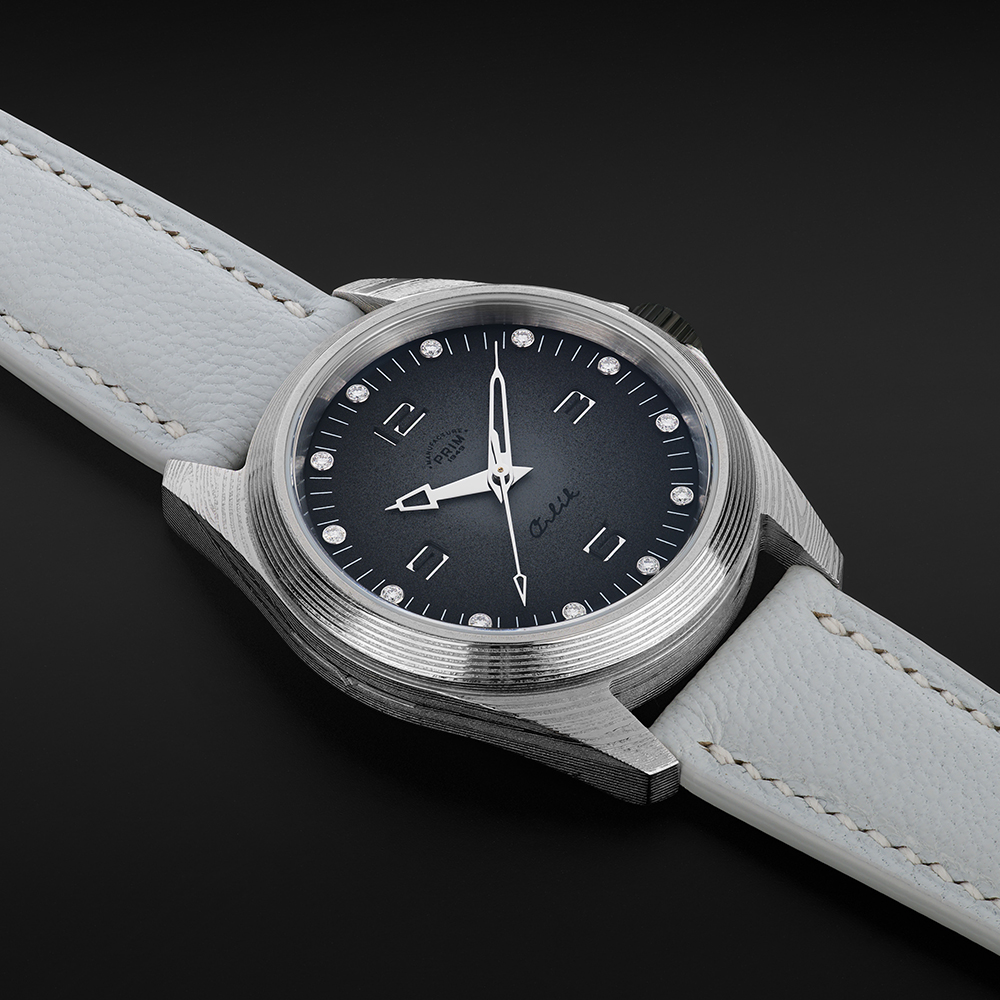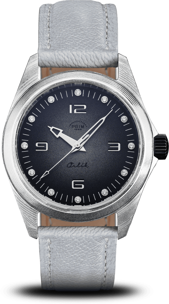 Sportovně elegantní model PRIM ORLÍK 38 DAMAŠEK BRILIANT LE jako první této řady staví luxus a vzhled na stejnou příčku jako funkčnost a odolnost. Evokuje DNA původních armádních hodinek, doplňuje ho ale nádech současnosti a okázalosti. Na zápěstí budí pozornost zejména diamanty v číselníku a materiál pouzdra a spony. Jeho úkolem je zdůraznit osobnost samotného nositele. Stává se tématem hovoru.