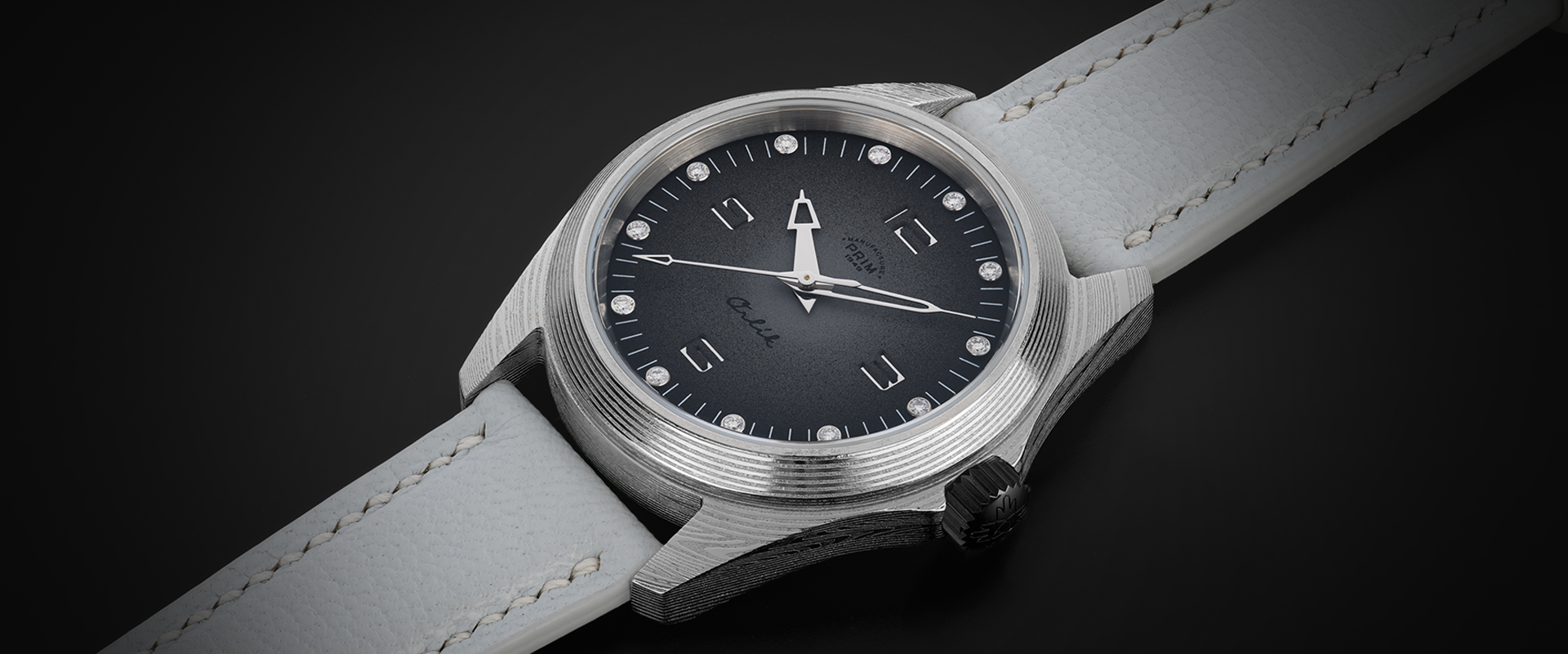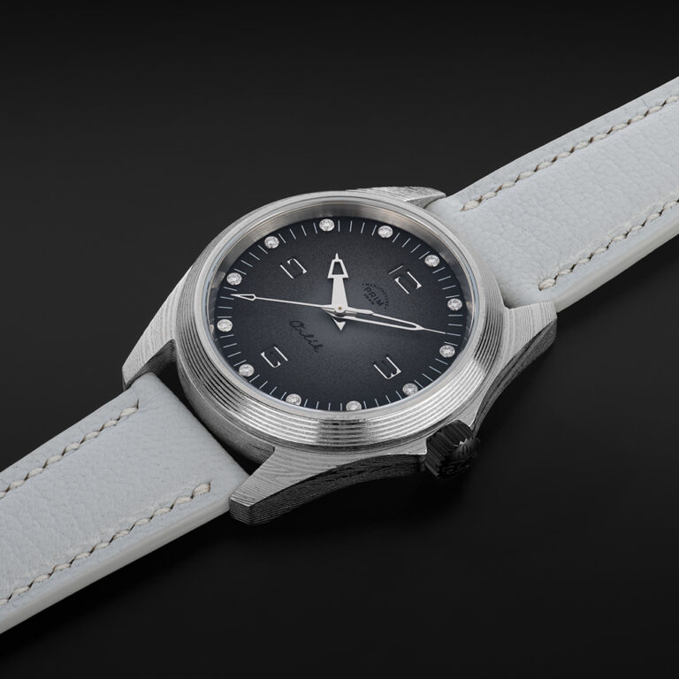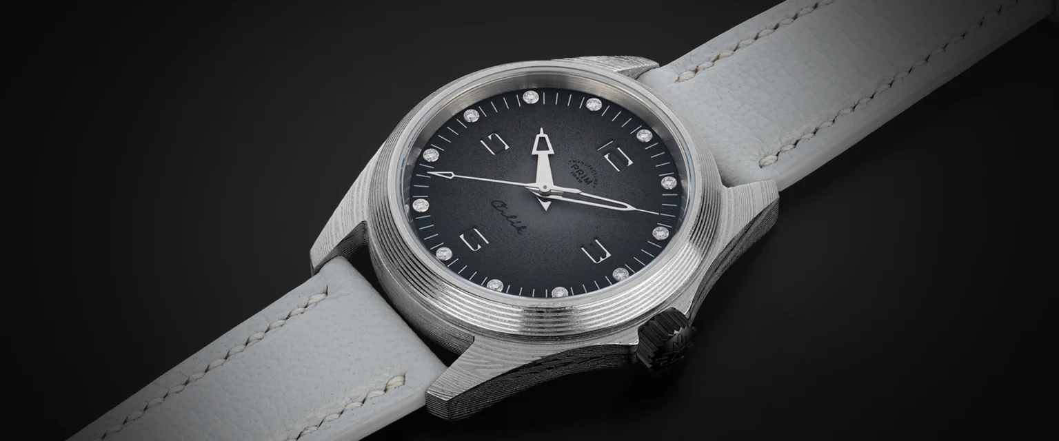 Sportovně elegantní model PRIM ORLÍK 38 DAMAŠEK BRILIANT LE jako první této řady staví luxus a vzhled na stejnou příčku jako funkčnost a odolnost. Evokuje DNA původních armádních hodinek, doplňuje ho ale nádech současnosti a okázalosti. Na zápěstí budí pozornost zejména diamanty v číselníku a materiál pouzdra a spony. Jeho úkolem je zdůraznit osobnost samotného nositele. Stává se tématem hovoru.