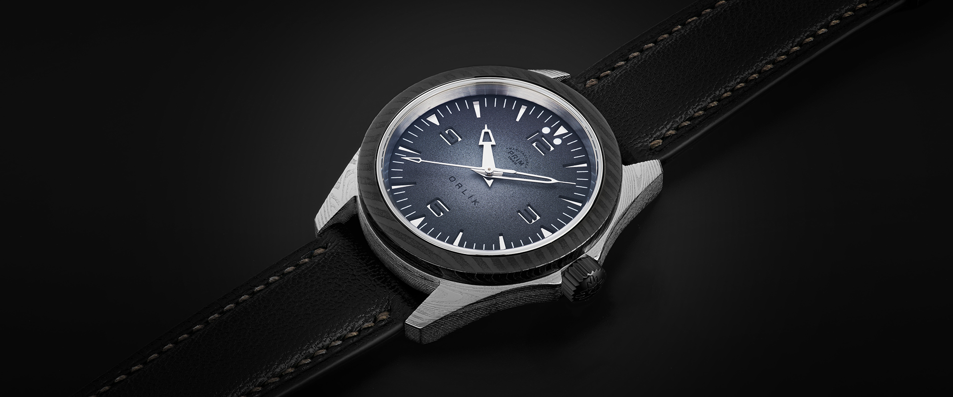 Sportovně elegantní model PRIM ORLÍK 38 DAMAŠEK LE jako první z této řady staví styl a vzhled na stejnou příčku jako funkčnost a odolnost. Evokuje DNA původních armádních hodinek, doplňuje ho ale nádech současnosti a luxusu. Na zápěstí budí pozornost charismatickým tmavým kroužkem ze stejného materiálu, jako je pouzdro a spona. Jeho úkolem je zdůraznit osobnost samotného nositele. Stává se tématem hovoru.