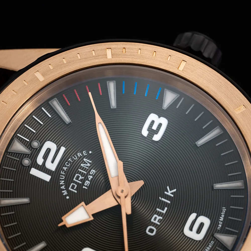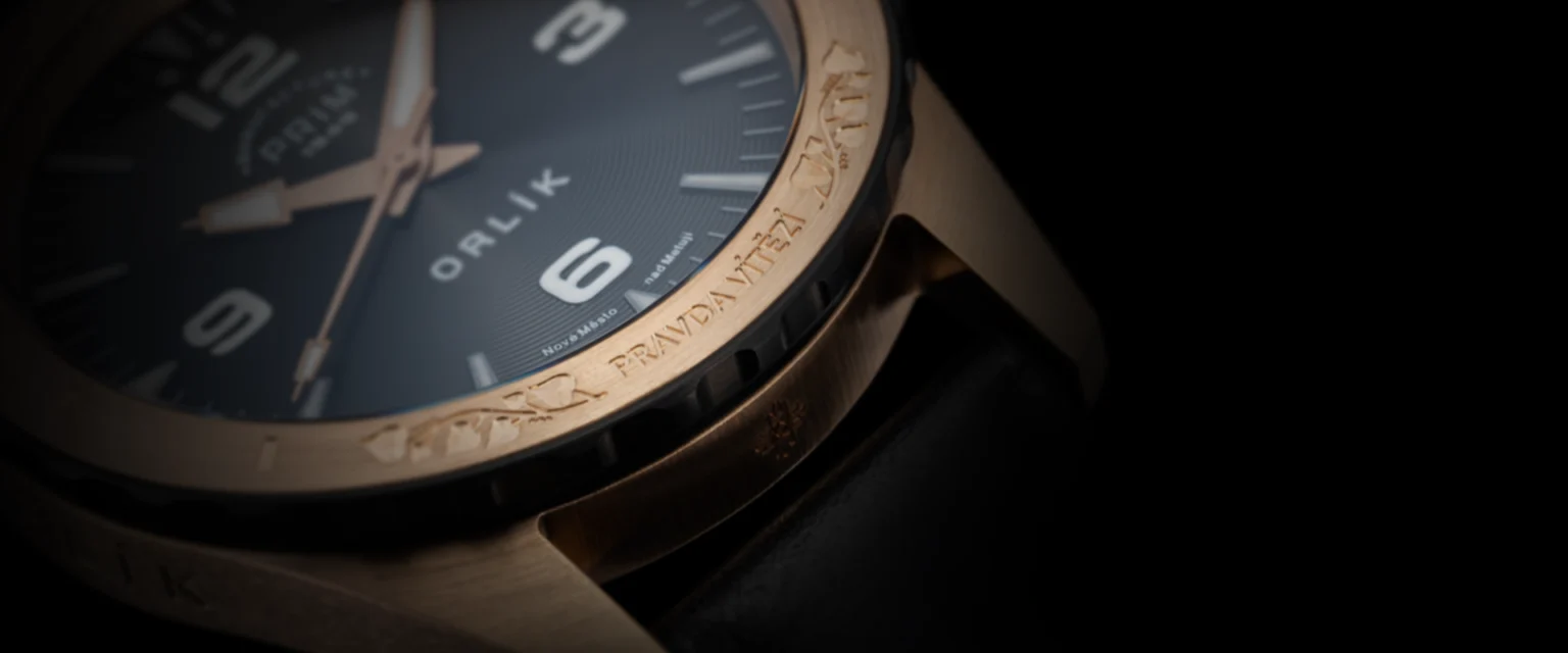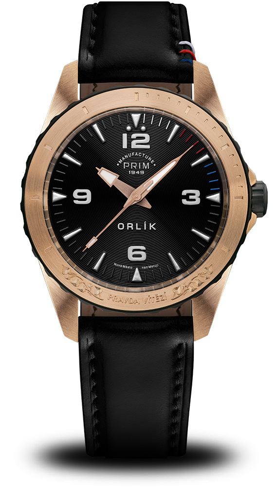 PRIM ORLÍK HRDOST je velmi speciální edicí nesoucí symboliku naší země. Akcentuje obdiv, respekt a úctu k naší zemi. V precizních detailech najdeme na tomto modelu poselství v podobě trikolory, českého lva, lipové ratolesti, slov naší hymny a motto: Pravda vítězí. Inhouse kalibr s automatickým nátahem umocňuje hodnotu manufakturně vyrobeného modelu. Tyto hodinky se vyrábějí pouze na zakázku a jejich počet není omezen.
