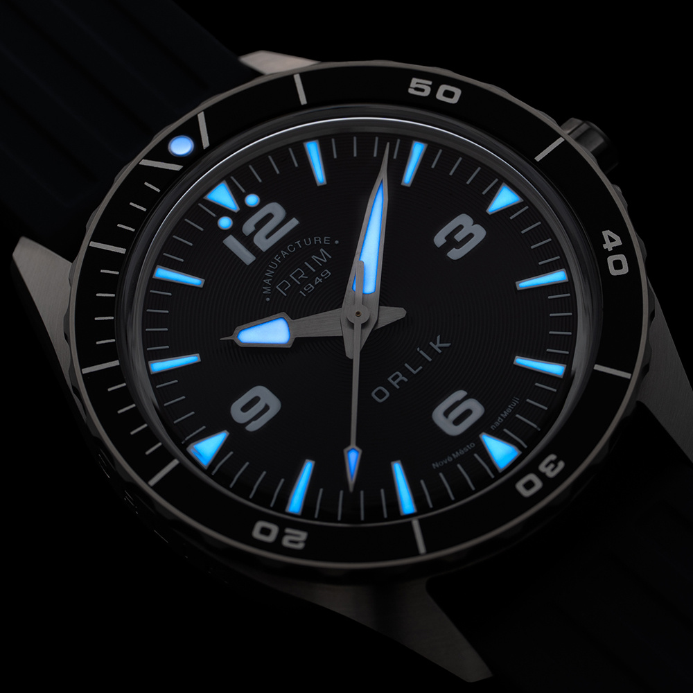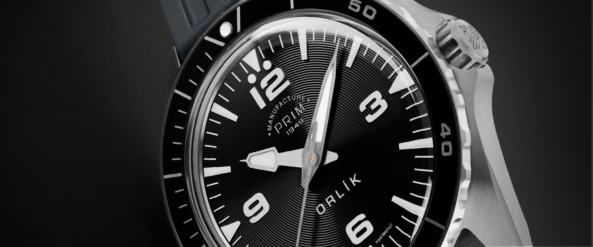Odolný model nové generace PRIM ORLÍK III je pokračováním legendy, jejíž počátek píšeme v šedesátých letech minulého století. Konstrukční evolucí prošlo zejména pouzdro, které při velikosti 42 mm dbá na komfortní nošení a estetický dojem. Nižší profil, ergonomie, kratší nožky. To vše je při srovnání s modely předchozích generací jasně patrné.