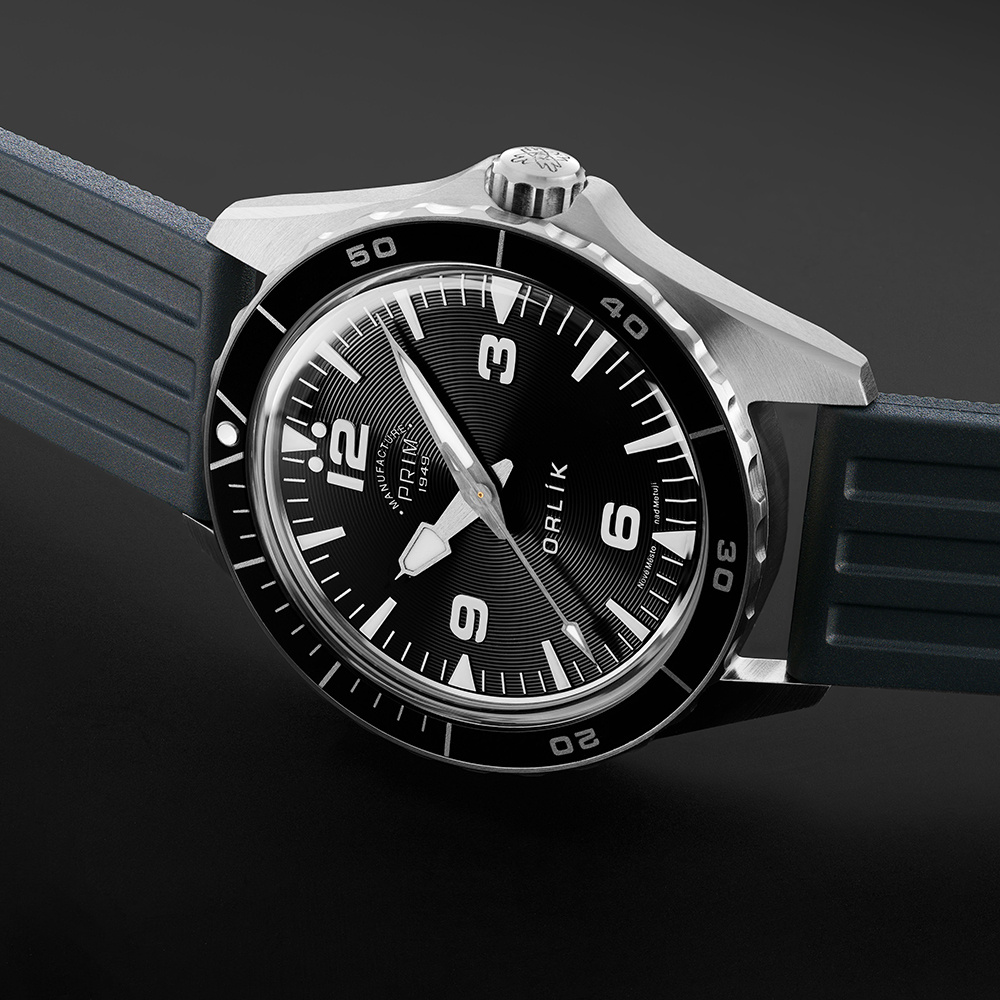 Tmavý číselník s typickou strukturou, bílé číslice v nostalgicky známém fontu a vysoká svítivost ruček za šera a v noci jdou ruku v ruce s posláním tohoto modelu. Společník, který nikoho nenechá v nouzi. Můžete se na něj spolehnout v jakýchkoliv podmínkách. Jeho design zaujme jak při outdoorovém, tak při formálnějším outfitu. V případě tohoto Orlíku máme co do činění s univerzálním modelem pro mnoho příležitostí.
