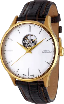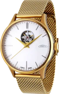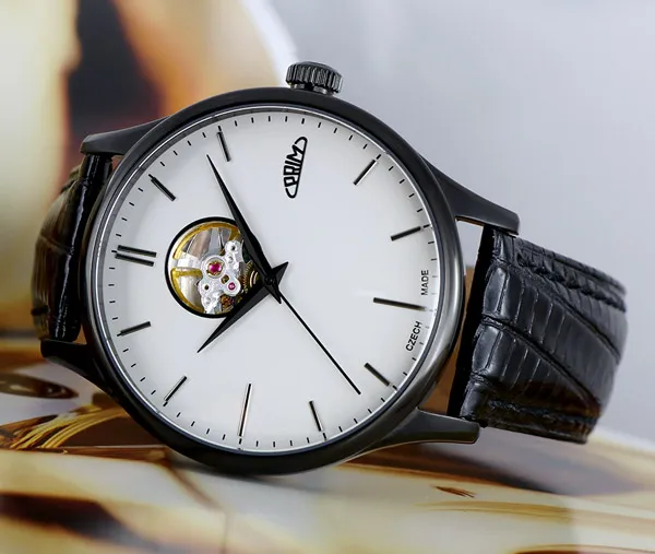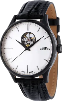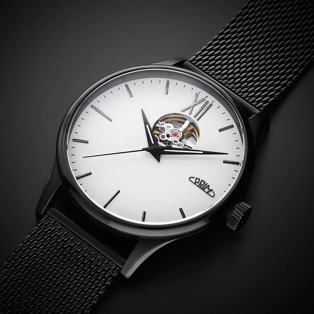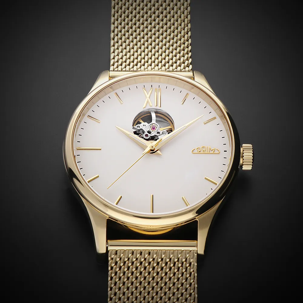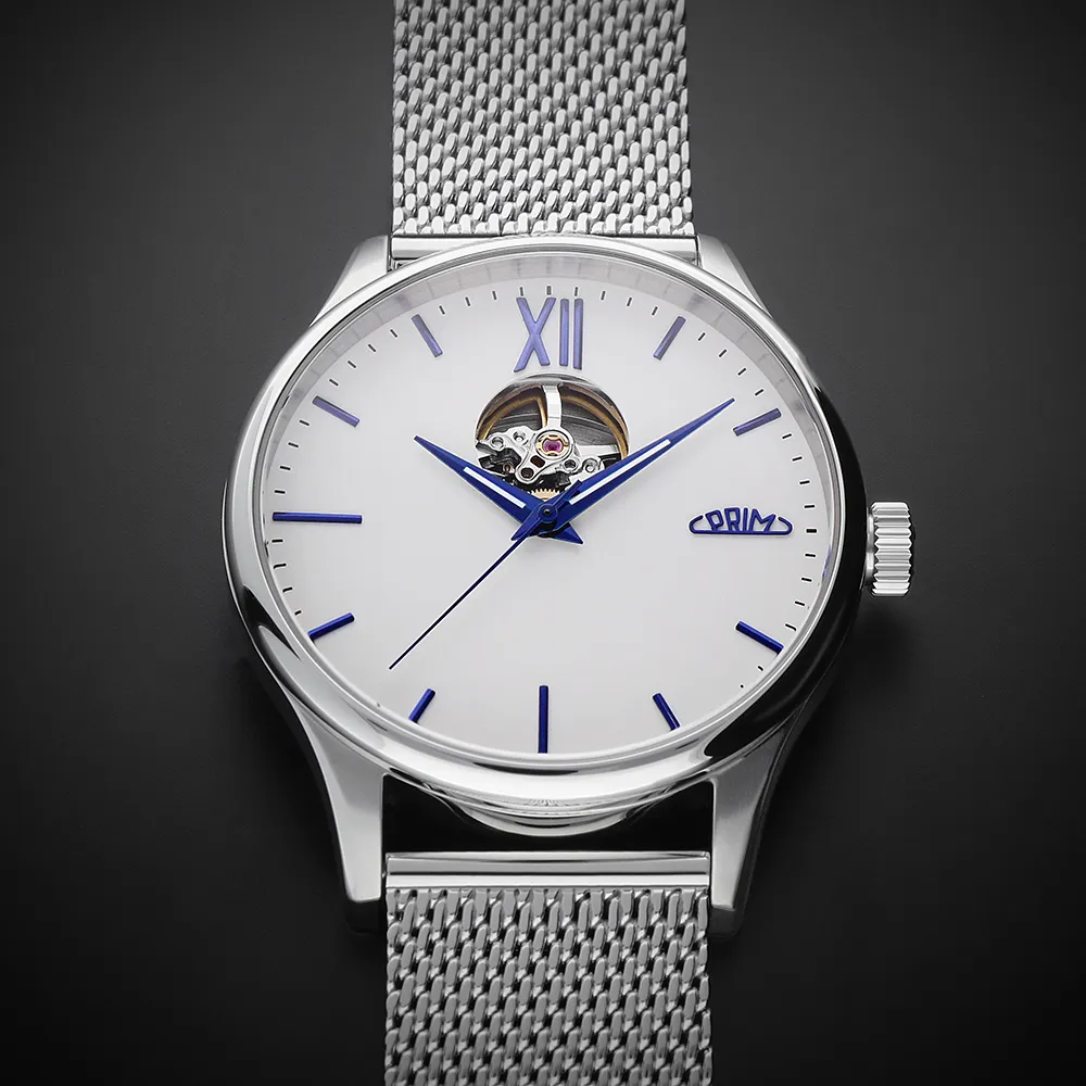 Pánské luxusní hodinky PRIM Automatic Primátor v speciální sérii 70 kusů. Exkluzivní hodinky inspirované klasickým a moderním designem s netradičním průzorem v horní části číselníku. Náš grafický tým se nechal inspirovat čistým minimalistickým designem. Připravili jsme pro Vás tento model ve 3 moderních barevných kombinacích – zlatá, stříbrná a černá. Edice stvořená pro opravdové gentlemany.