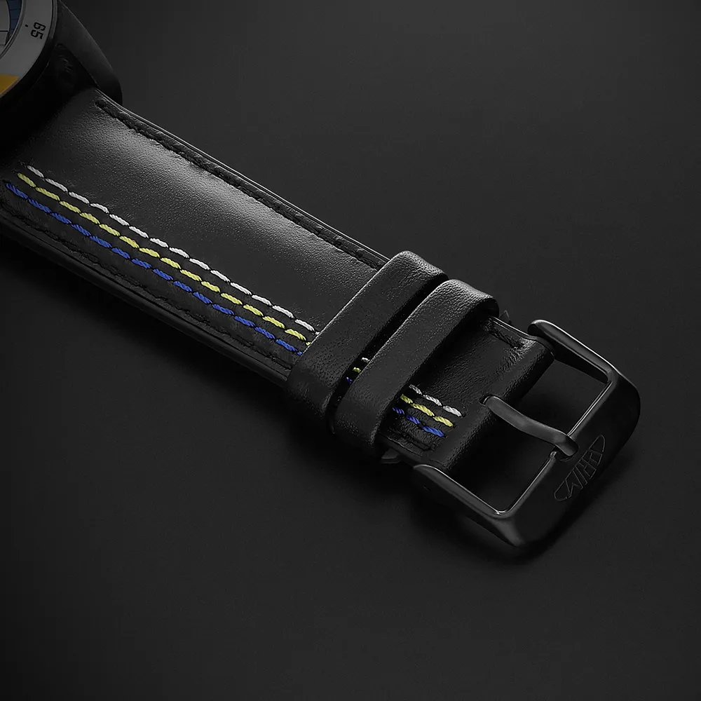 Edícia je osadená remienkom z materiálu FKM – jedného z najodolnejších elastomérov súčasnosti, bežne používaného v motoršporte a letectve. Pre maximálny komfort je vrchná časť potiahnutá kožou, spodná zostáva z príjemného FKM silikónu.
