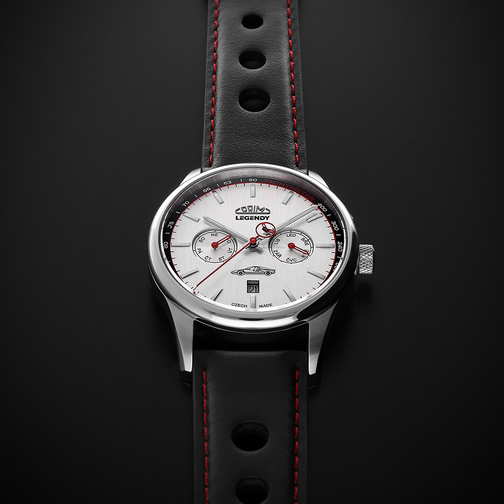 Model 110 Super Sport: Číselník s kefovanou úpravou v oceľovom odtieni, športové akcenty a dynamické červené detaily odkazujú na odvážny futuristický štýl konceptu známeho z filmu „Upír z Feratu“. Hodinky sú osadené čiernočerveným perforovaným rally remienkom, ktorý svojim pretekárskym charakterom dokonale ladí s duchom športového prototypu. Tento remienok je nielen vizuálne pôsobivý, ale odkazuje aj na motošportovú históriu 70. rokov.