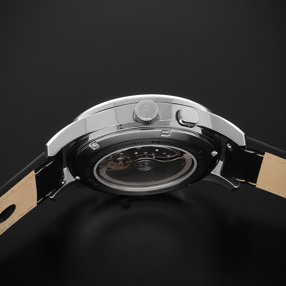 - Vďaka presklenému zadnému veku môžete obdivovať krásu mechanického strojčeka
