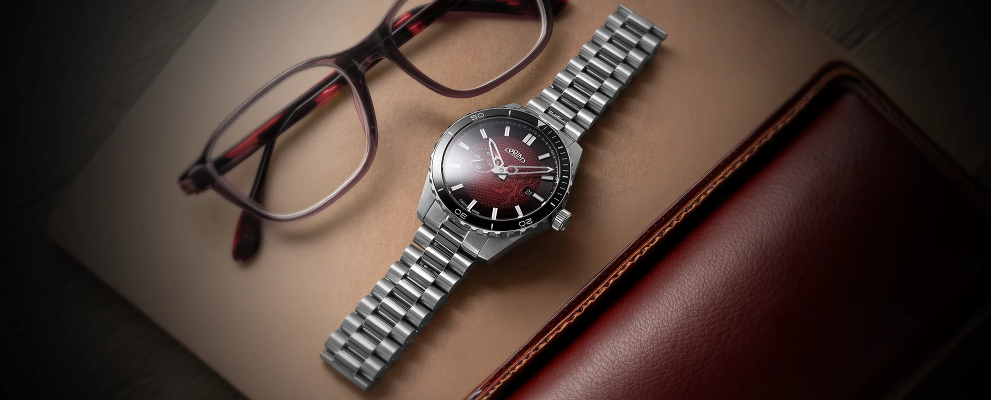 Akcentace národního symbolu je vsazena do kvalitního odolného pouzdra z oceli. To rámuje novinka: skleněná safírová luneta s kvalitní švýcarskou luminiscencí.