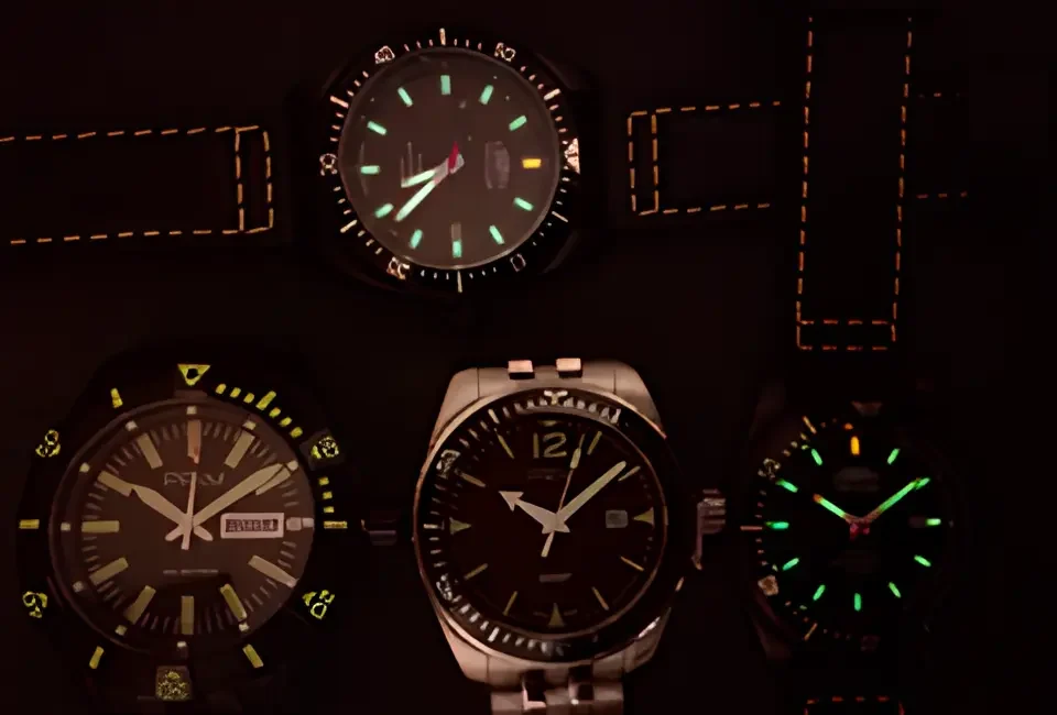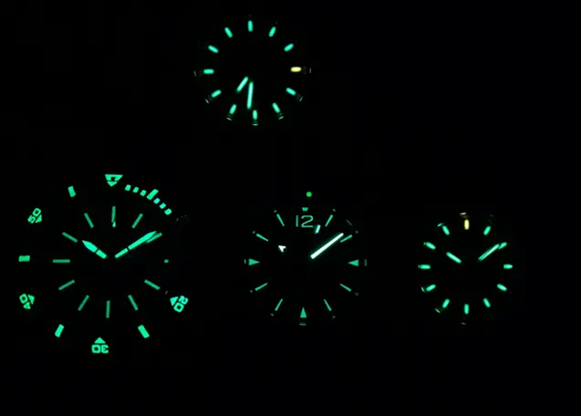 Ampulky s tritiem, které svítí na indexech a ručičkách našich hodinek z řady PRIM Sport Tritium mají jiné vlastnosti než standardně používané technologie jako jsou luminiscenční barvy. Díky vrstvě luminiscenční barvy nebo ampulek tritia dojde k zvýraznění indexů za snížených světelných podmínek nebo ve tmě. Klasická směs luminiscenční barvy se nanáší v různých vrstvách. Má vliv na svítivost a délku svítivosti neboli vyzařování světla, které pojme od jiného světelného zdroje. Vyzařování luminiscenční barvy je po nasvícení velmi intenzivní na rozdíl od ampulek tritia viz fotografie pořízena těsně po nasvícení cca do 1 minuty. Hodinky s použitím tritia jsou nahoře a vpravo.