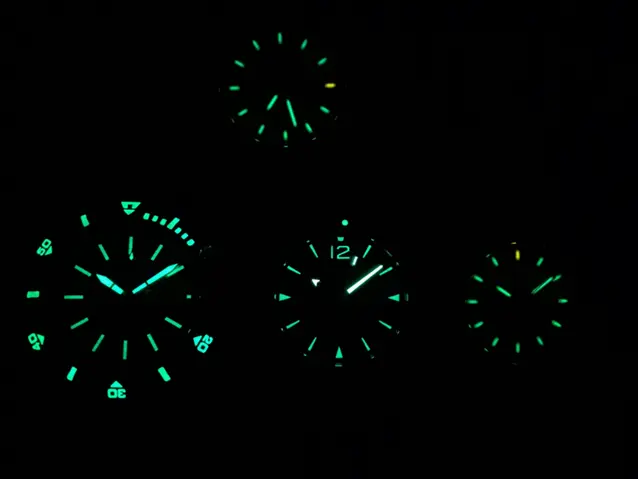 A tak tomu je i nadále. Luminiscenční indexy vyzařují světlo stále méně,ale ampulky s tritiem svítí pořád stejnou intenzitou. U luminiscenčníchindexů samozřejmě záleží jakým světlem indexy budou nasvíceny. Zdaumělým či slunečním světlem a také jak dlouho. To vše má vliv nasvítivost.