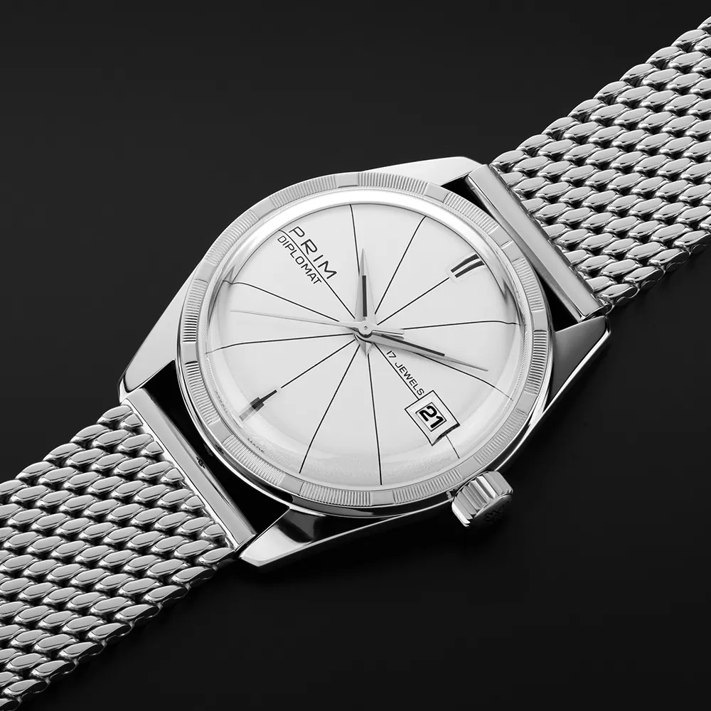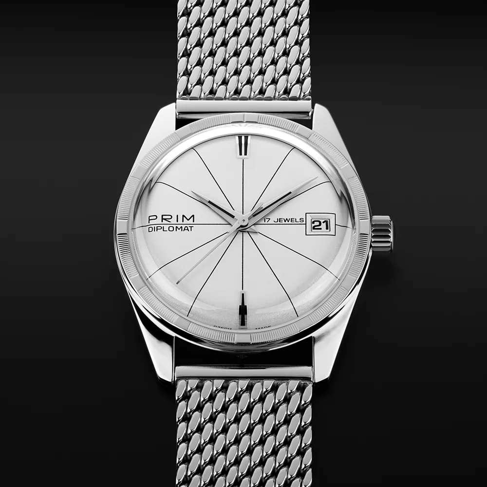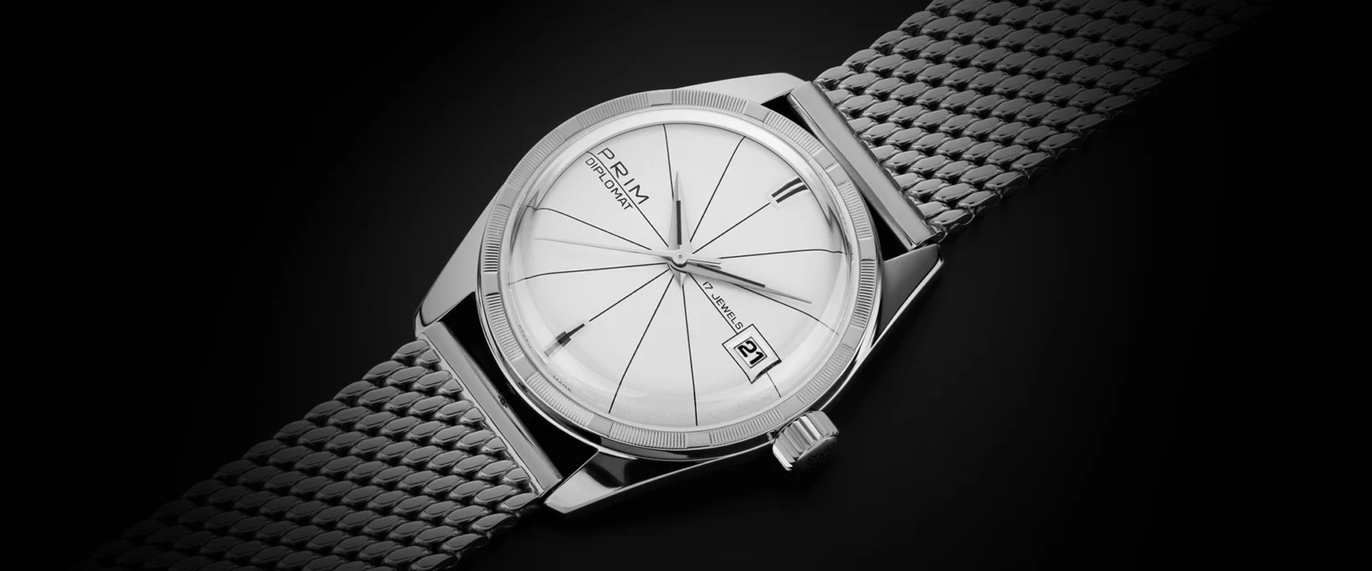 Jestli je některý model v naší historii synonymem pro společenské hodinky, je to PRIM Diplomat. Klasický, krásný, v čistém designu konce 60. let minulého století. Už tehdy symbol prestiže a ukázka jemné práce českých hodinářů. Do vínku mu bylo dáno, že nezestárne. Jeho nadčasovost potvrzuje nekonečná popularita, která nikdy nepominula.