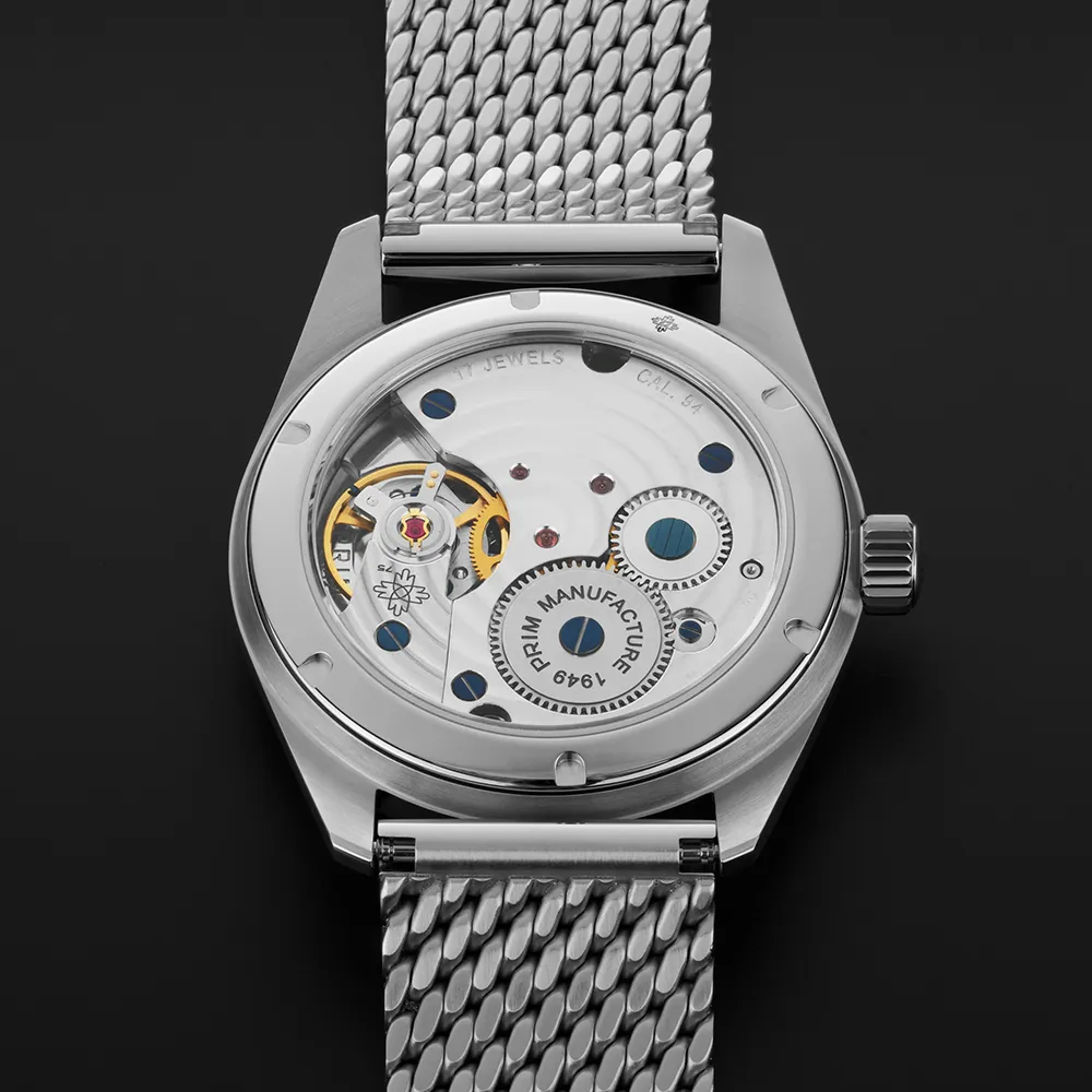 Uvnitř tohoto modelu tiká inhouse strojek PRIM kalibr 94.00 s ručním nátahem. Se 17 ložiskovými kameny vykoná 21 600 kyvů za hodinu (3Hz). Rezerva chodu je min. 48 hodin.