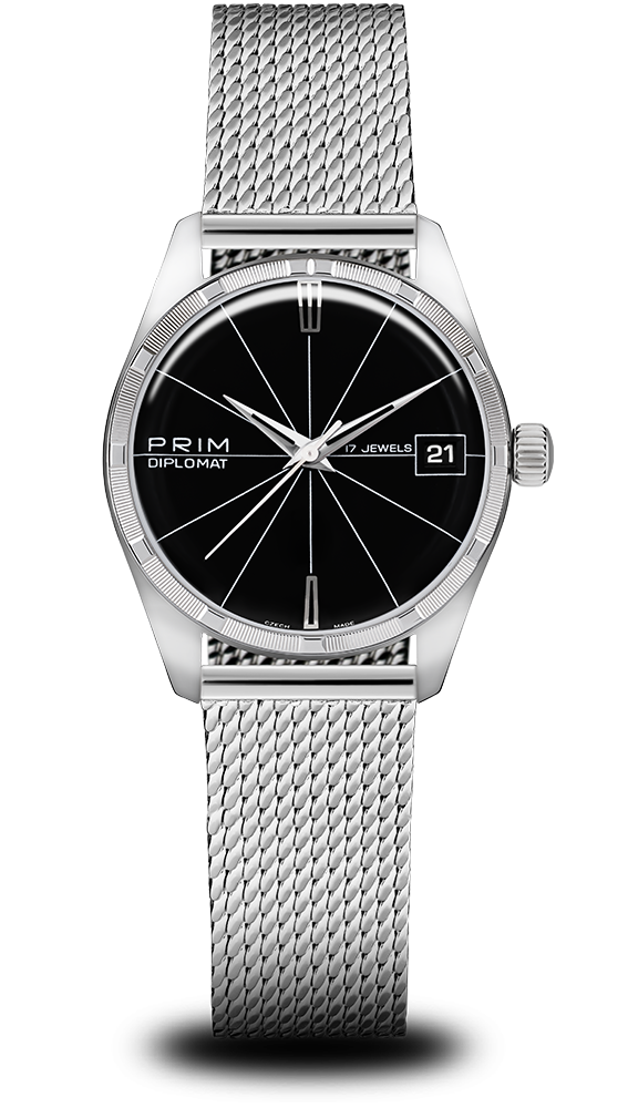 PRIM Diplomat 34 C znamená prestiž. Ctí minimalismus a design 60. let minulého století, nyní však v moderním provedení. Jeho význam a popularitu ještě žádný podobný model nepřekonal. Důkazy o jeho nadčasovosti najdeme všude v dlouhé historii českého hodinářského řemesla. Snadno individualizovatelný změnou materiálu pouzdra. Vysoce hodnotný také díky inhouse kalibru 94.00 s ručním nátahem. Ten dává hodinkám to nejlepší z naší české manufakturní výroby.