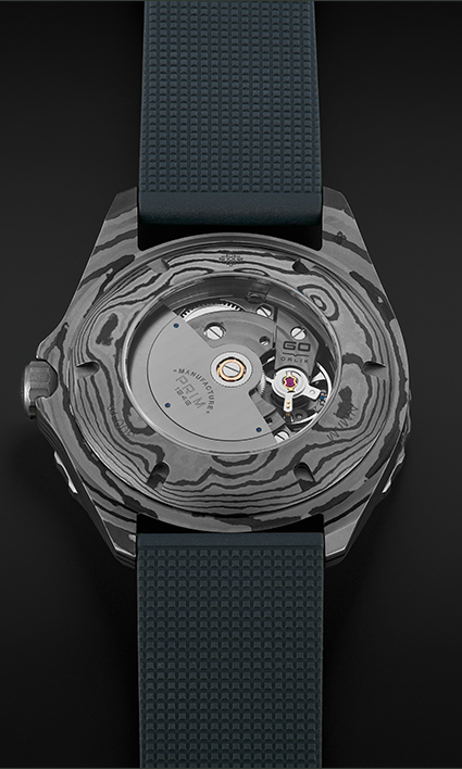 Luneta je dostupná ve dvou verzích: frézovaná s plněným lumibodem nebo laserovaná s černou povrchovou úpravou HyCeram a svítícím lumi bodem v případě „pánského“ modelu. Tento detail, který ladí s modře svítícími ručkami, nejen zdůrazňuje sportovní charakter hodinek, ale také zajišťuje jejich praktické využití i ve tmě.