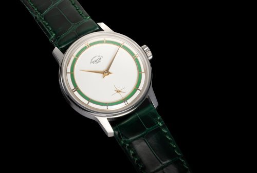 Zajímavé detaily najdeme také na spodní straně hodinek. Pod proskleným zadním víkem je ukrytý manufakturní strojek PRIM s ručním nátahem. Originálním prvkem je zdobení strojku drobným reliéfem, který připomíná otisk kola traktoru. Promyšlený design hodinek je dotažen k dokonalosti lahvově zeleným řemínkem z aligátoří kůže.